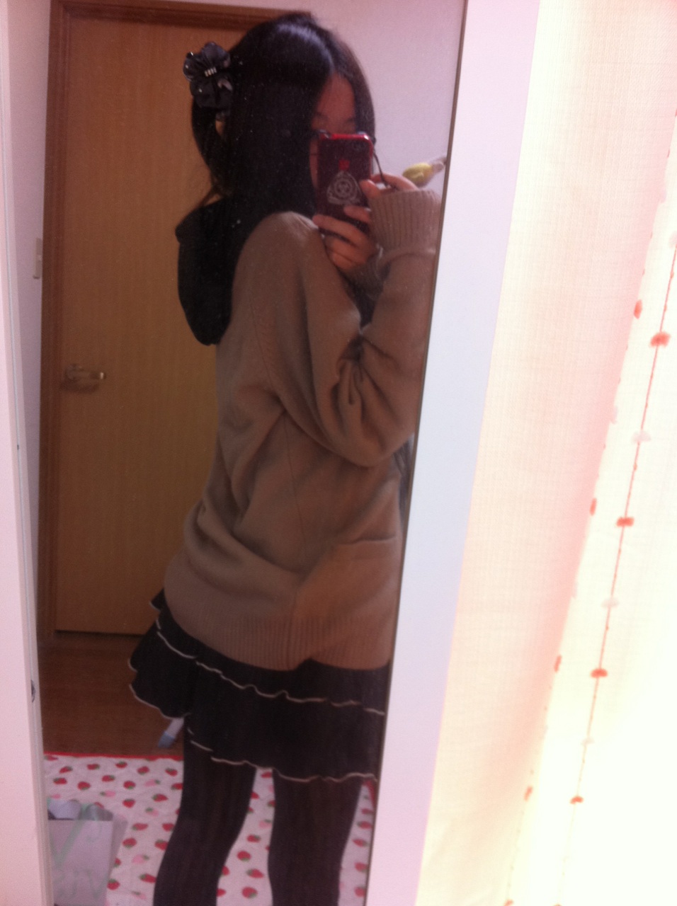 昨日引越しの準備で服の整理をしていた時、中学の時によく着ていた服が出てきたので、着てみました。