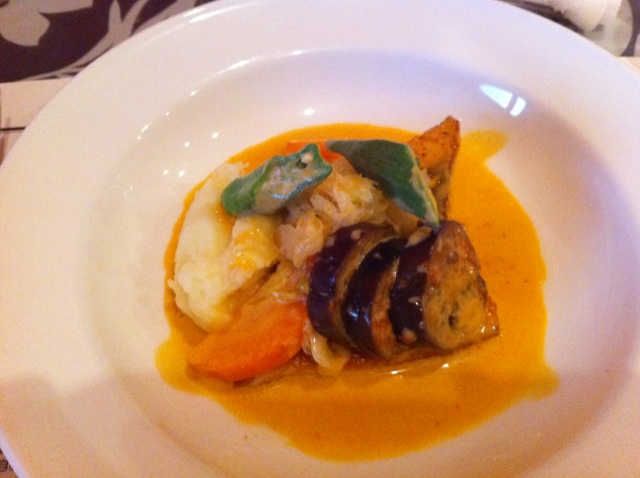 ヒラメもホタテも野菜も全部すごい柔らかくて、海老ソースもすっごく濃厚。
