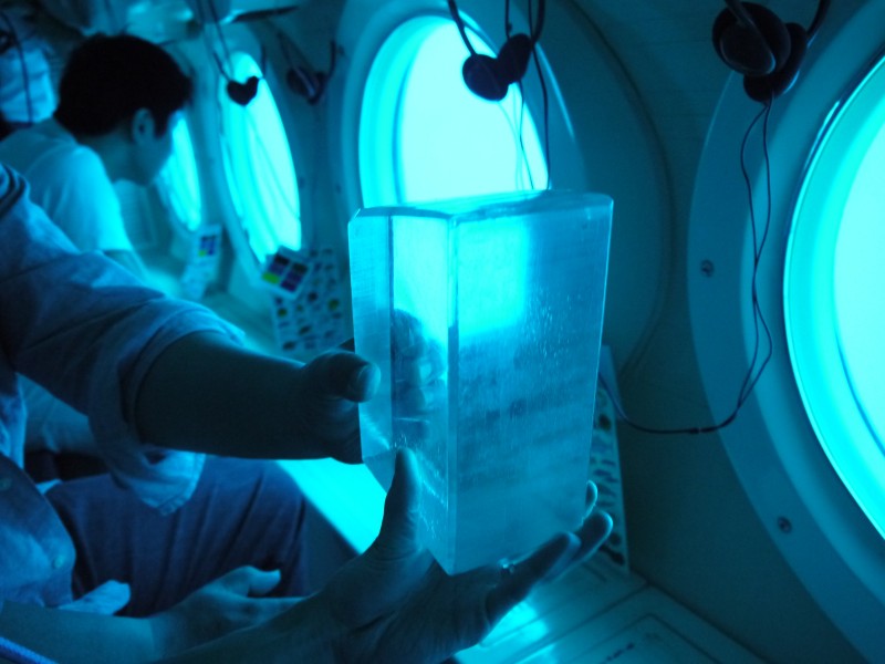 そしてこの潜水艦の窓ガラスの厚さ、こんな感じらしいです。