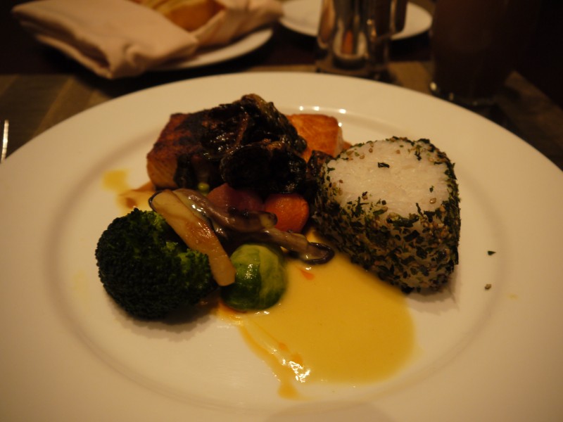メインはチキンかサーモン選べたので、私も殿もサーモンで。