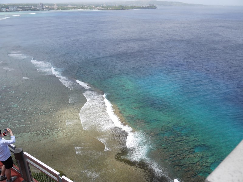 すごく高く感じるんですが、この高度からでも海が透明で珊瑚が見えます。