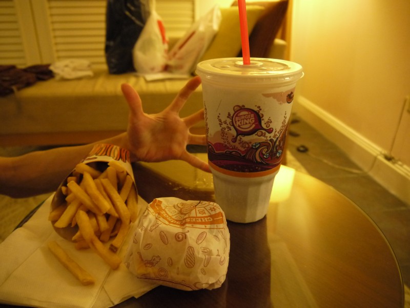 で、あんまりお腹もすいてなかったので、チーズバーガーのセットを1つだけ買ってヒルトンへ。