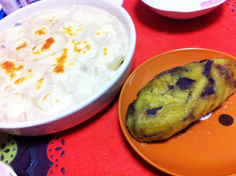 作ったのはゆうこりん料理本に載っていた、タラとジャガイモのグラタンと…