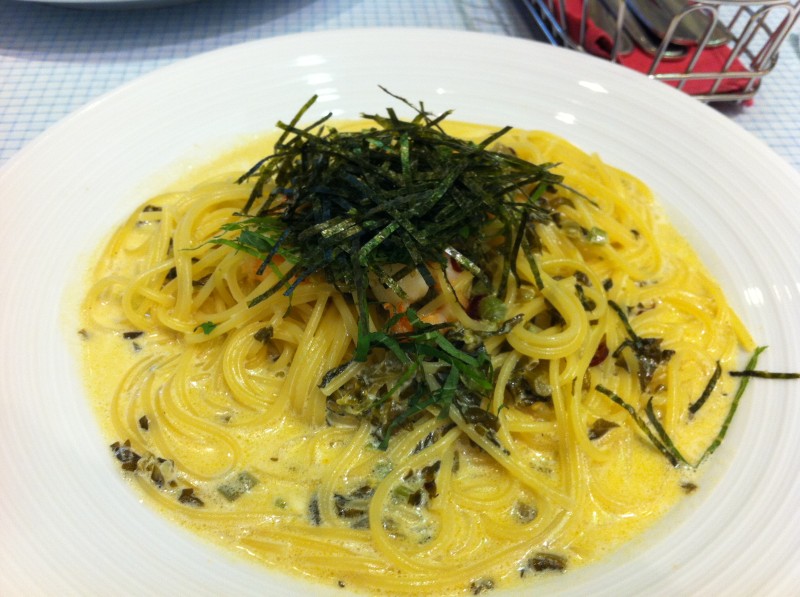 海老と高菜がたんまりあって、クリームソースはピリっと辛いんです。