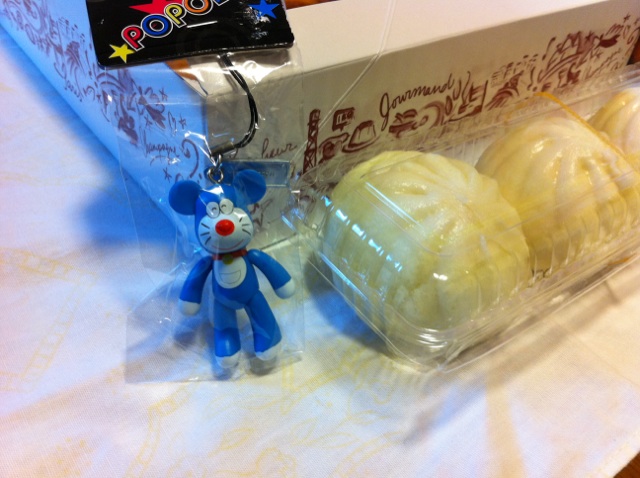 肉まんと、あれるやんへのお土産にパチモンのドラえもんを買いました。
