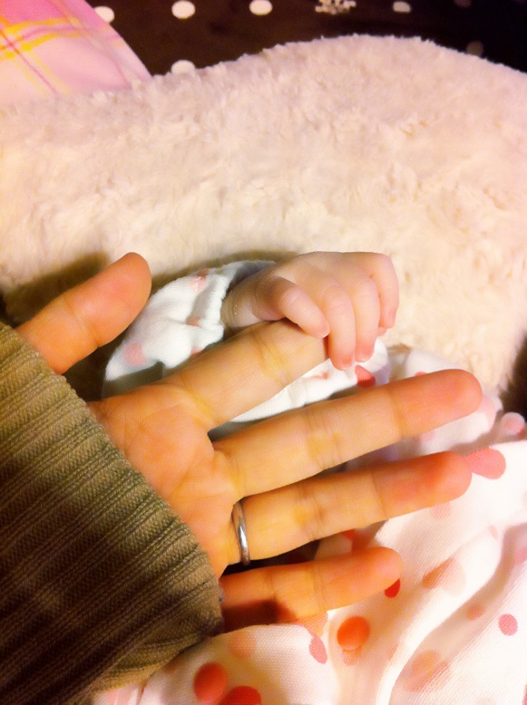 つい先日産院に行ったときに、掃除のおばさんに「可愛い、色白、指が綺麗!」と褒めていただきました。