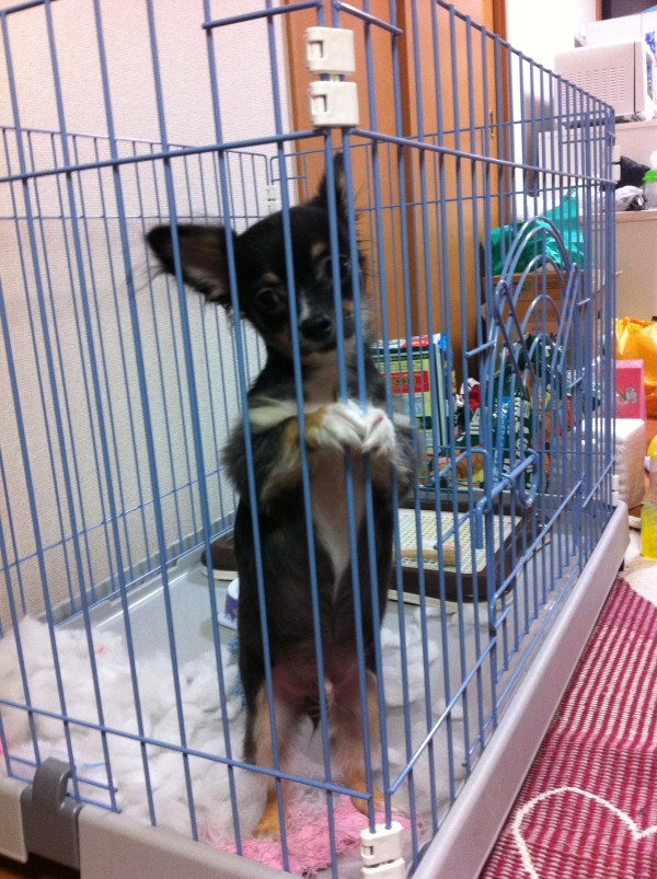 ハロ氏はケージからどうしても出たいとき、後ろ足だけで立ってくうんくうんと鳴いてきます。