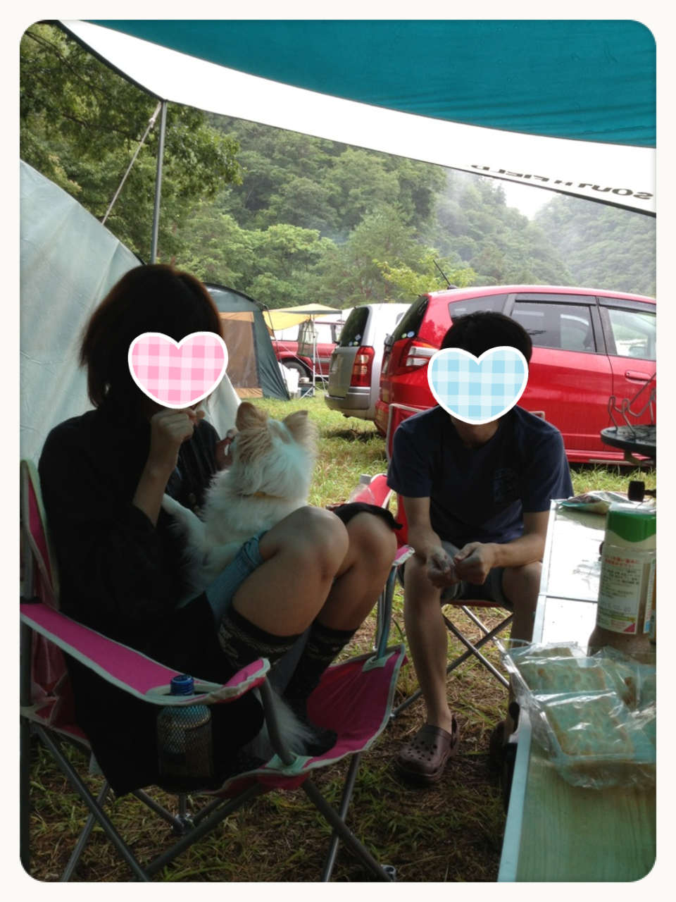 テント2個とタープ設営後、まったり中。