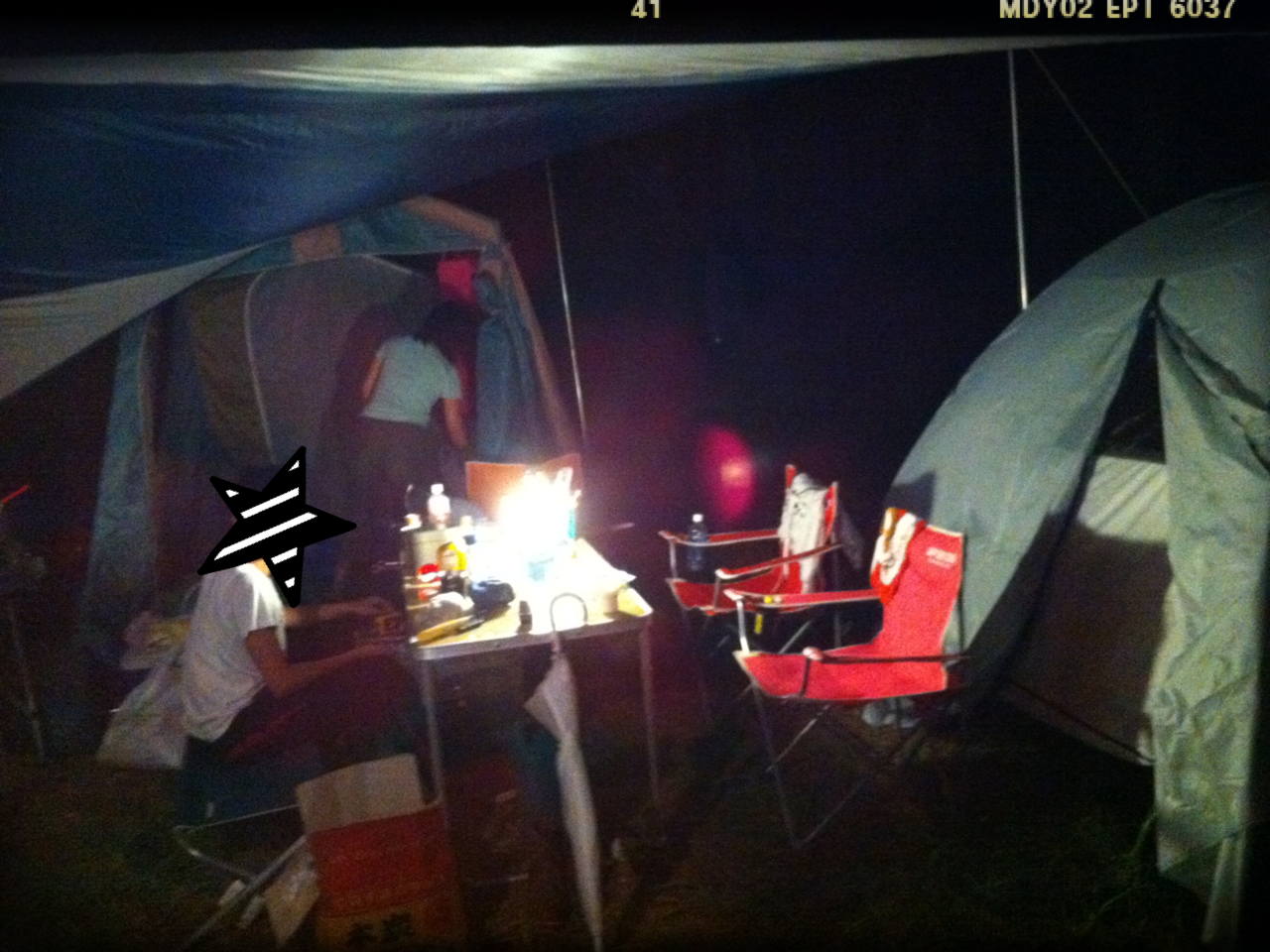 私達のタープは、ベテランキャンパー(元)のダディが居てくれたおかげで、すごい明るい光源がいくつもあったからよかったのだけど、