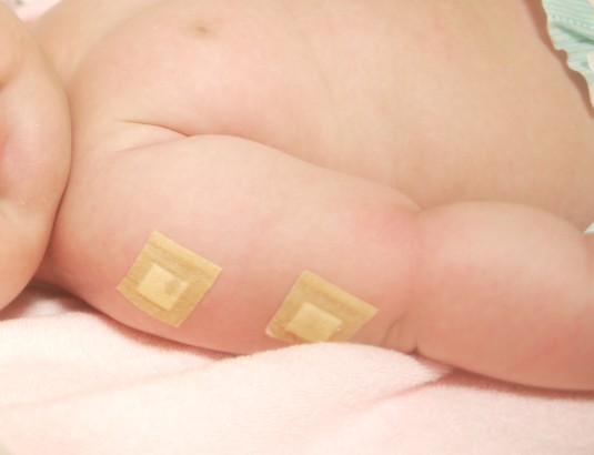小さな腕に3回もちっくんするんだもん、痛いよねぇ。かわいそうに。