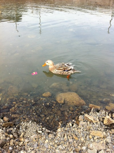 カモ(だよね?)さんがいて、人間が怖くないのかこんな近くまで寄ってきました。