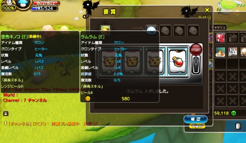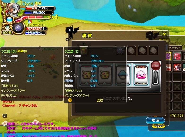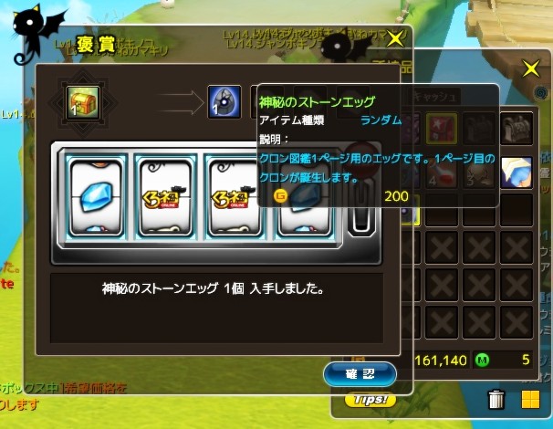 おお、ランダムでクロン(ペット)が手に入るのかぁ。