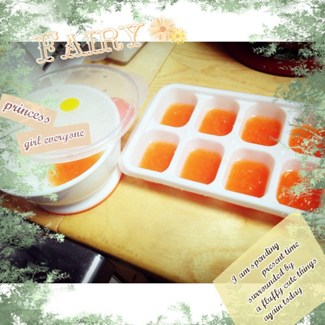 今のところ1回食で10倍がゆににんじんのとろとろを混ぜた、にんじんがゆを与えてるのですが。