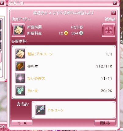 材料、制作費もろもろ込みで1000Gはとびました。