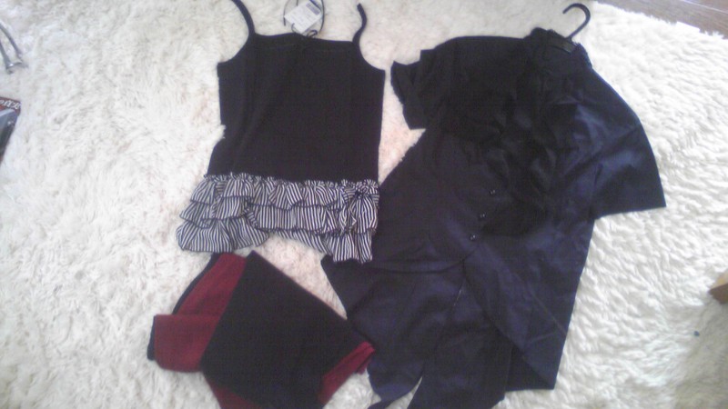 お気に入りは2枚目の写真の3枚。キャミとマフラーと黒いシャツ。