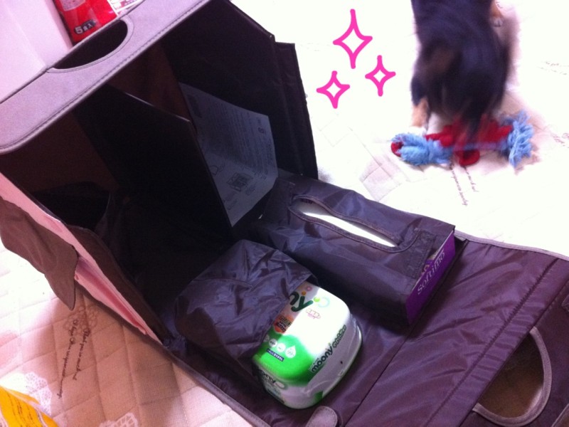 こんな感じで、ティッシュやおしりふき、おむつが大量に収納できるようになってます。