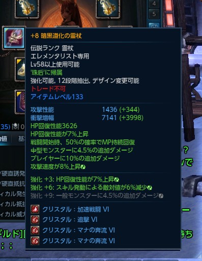 恐怖上級に行ったら暗黒霊杖が出たので、+7以上だとビビッシュを抜けるかなぁと言う事で、